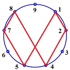 Los dígitos 1 a 9 están conectados mediante el número 3. Las conexiones son triadas del tipo n–3 → n → n+3. Son las siguientes:
