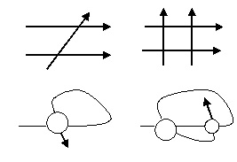 Using the sharing technique, it is possible to define all kinds of structures. For example, if we symbolize a sequence by a line ending in an arrow, and a set by a circle, we can specify structures such as the following: