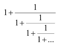 Another equivalent way of expressing the golden ratio is by the fractal expression (also of a self-reference and infinite levels)