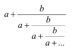 This is an arithmetic expression with a self-reference and infinite levels. It represents the continued fraction