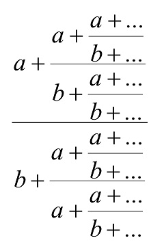 This is an arithmetic expression with two self-references and infinite levels. Its expansion would produce a continued fraction of the form