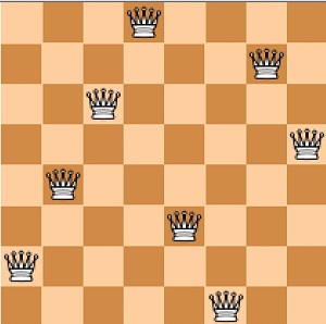 This problem (which is NP-Complete) interested mathematicians like Gauss and Cantor, who generalized it to n queens on a board of n×n squares.