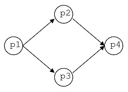to indicate that p1 must be executed before p2. It is coded (p1 p2).