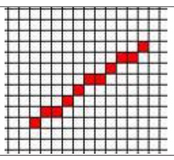 The use of Bresenham's algorithm makes it possible to implement the continuous (the vectorial) through the discrete (the matrix).