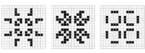 The "game of life" was invented by John Conway in 1970 when he was trying to drastically simplify the rules and states of von Neumann's self-reproducing machine. It is a two-dimensional cellular automaton that represents the paradigm of dynamic complexity from the simple: three very simple rules applied successively (to an initial configuration of black cells) can produce extremely complex dynamic results. The rules are as follows: