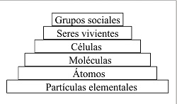 Paul Oppenheim and Hilary Putnam [1958] claim that one day all sciences will be reduced to one, and that science can be described by a single scientific language. According to their "working hypothesis", the different sciences can be arranged hierarchically in 6 levels (see figure), where each level includes the higher ones. Fundamental particles constitute the fundamental level. The highest level is that of the social sciences.