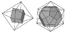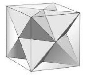 The dual polyhedron P' of a polyhedron P is formed by taking the centers of the faces of P and considering them vertices of the new polyhedron P'. In the Platonic solids cube and octahedron are dual, as well as the icosahedron and the dodecahedron. The tetrahedron is dual of itself.