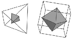 The minimal tetrahedron is formed with only 4 packed spheres, which is a stable figure. The minimal cube corresponds to 8 packed spheres in an unstable cube.