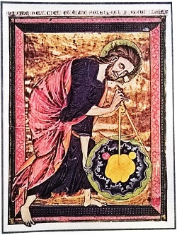 God draws the universe with a compass. Bible Moraliseé (c. 1250)