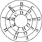 This figure is composed of the first and second figures. It considers all possible combinations of the 9 letters, giving rise to 36 two-letter chambers, where each letter refers to the two figures.