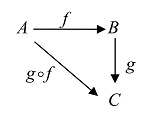 The composition of the morphisms f:A→B and g: B→C is another morphism g○f:A→C. Therefore, if f belongs to Mor(A, B) and g belongs to Mor (B, C), then g○f belongs to Mor(A, C).