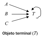 Objeto terminal. An object T of a category C is terminal if for each object X of C there is only one morphism X→T.