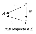 If A is an object of a category, and we have two morphisms u:S→A and v: T→A, then u≤v is said to exist if w: S→T such that u = v○w. And u≡v if and only if u≤v and v≤u.